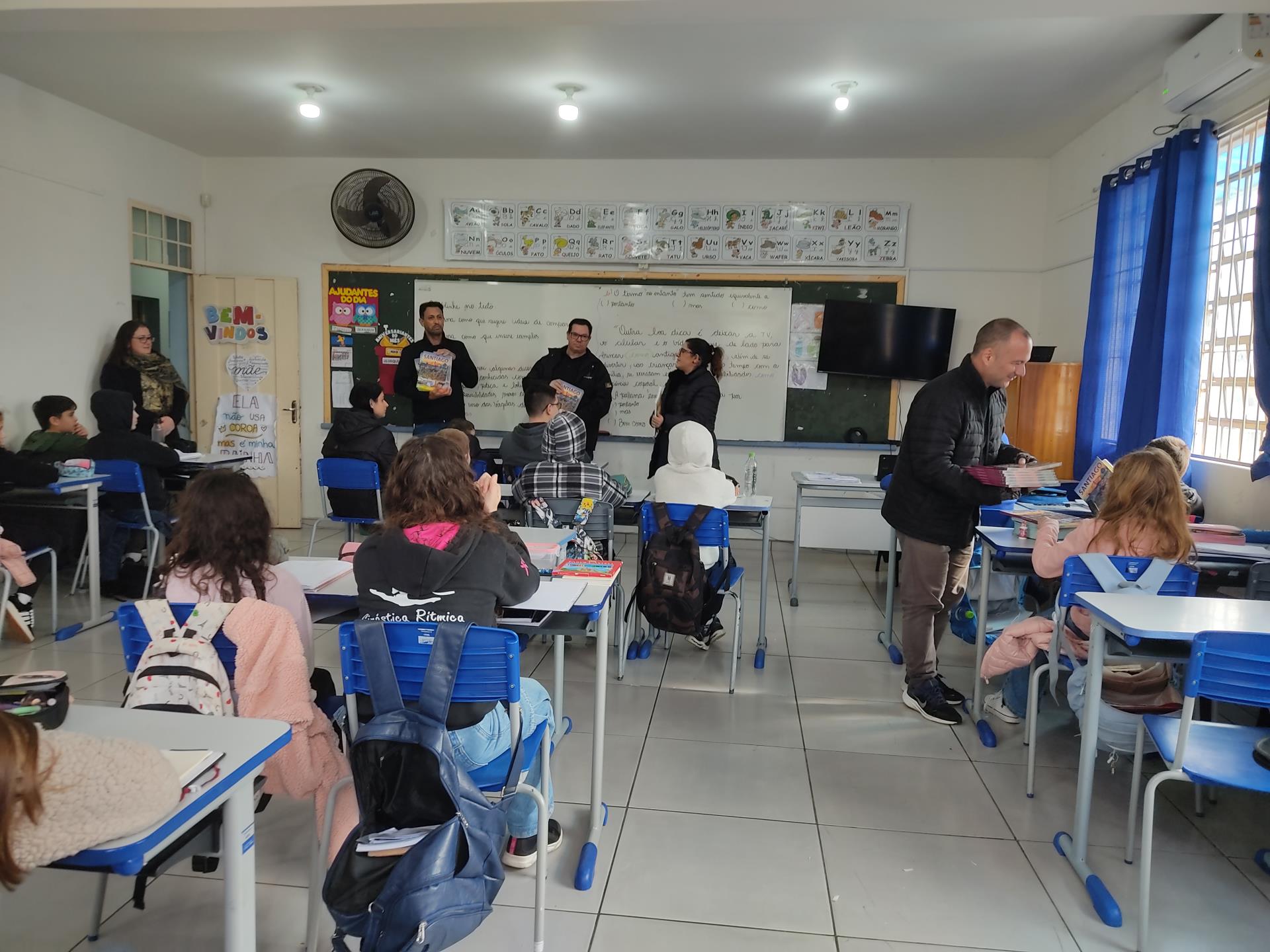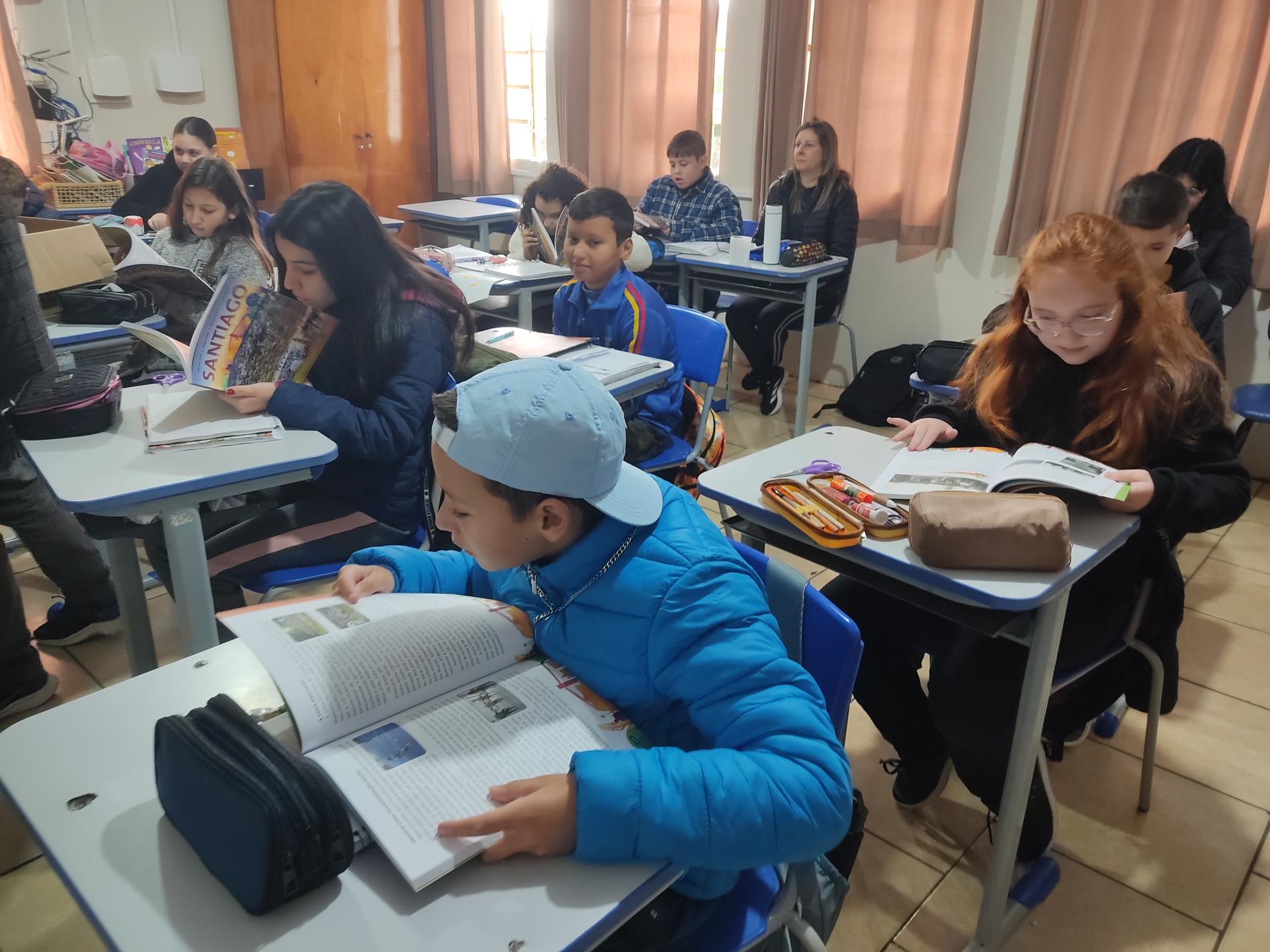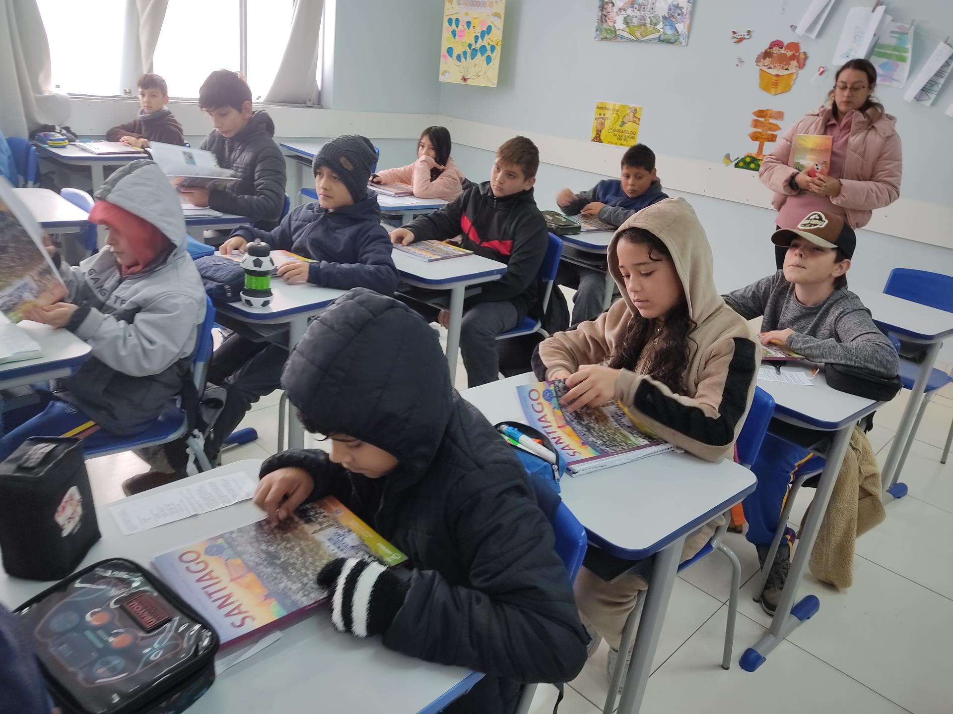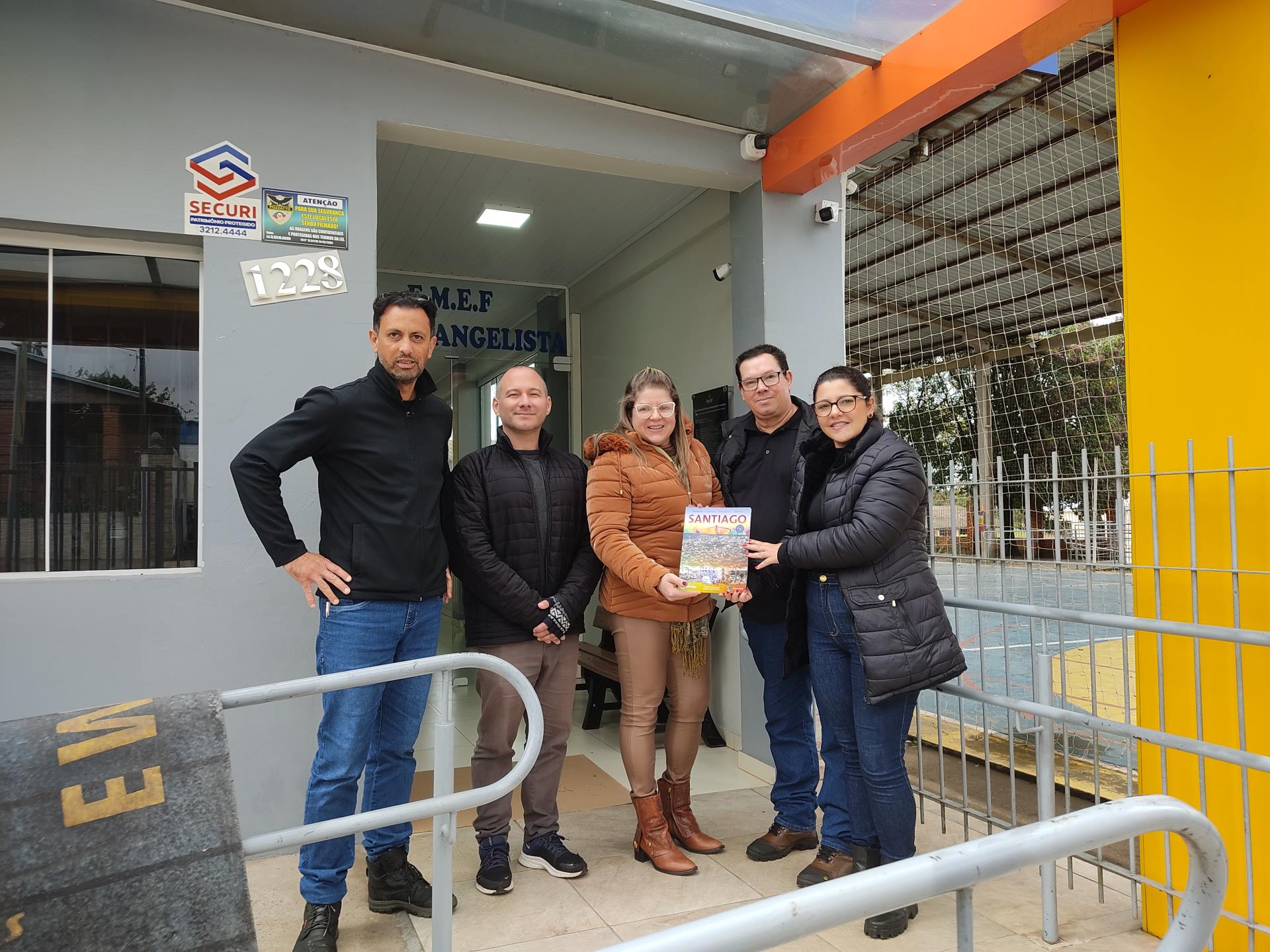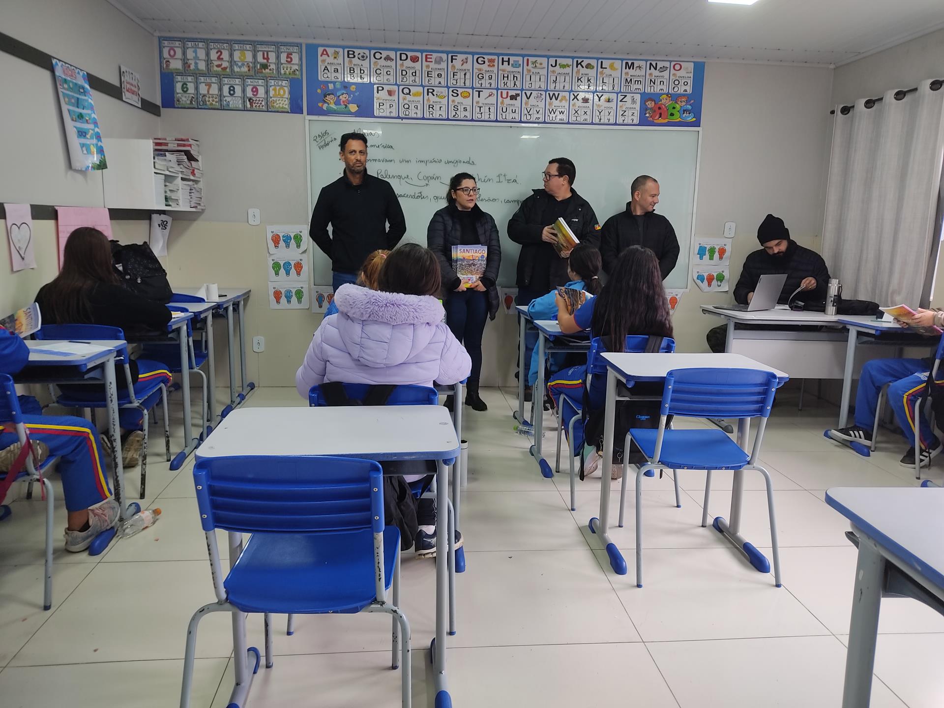 Na quinta-feira, 29, a Secretaria de Educação promoveu a entrega dos livros didáticos "Santiago: Terra da Gente", uma publicação da Editora Didáticos. Os livros foram entregues nas escolas de ensino fundamental Severino Azambuja, Geraldina Borges, Heron Ribeiro, São José, Sílvio Aquino, João Evangelista e Sebastião Colpo, contando com a presença dos autores Denílson Cortes, Juliana Borges, Macister da Silva e Márcio Brasil. O livro oferece muito conteúdo sobre Santiago, desde a história, relevo, hidrografia, lazer, cultura, meio ambiente e muito mais. A obra será trabalhada com alunos dos 5º aos 9º anos. Ao receber o livro em mãos, os alunos demonstraram muito entusiasmo. Na última terça, 28, aconteceu uma formação com os professores das escolas para apresentar a obra e abordar a forma de uso do livro.