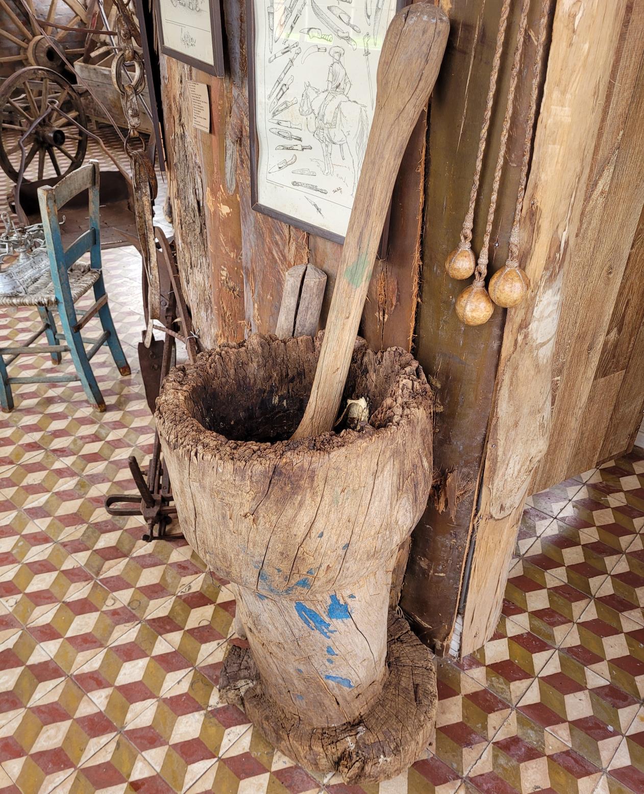 Os pilões de madeira foram utilizados por várias culturas ao redor do mundo. São utilizado para bater e moer grãos, como milho, trigo, arroz, feijão e outros cereais. Preparar temperos, especiarias e pastas. Também servia para medicina tradicional para moer ervas medicinais e outras substâncias para preparar remédios ou extratos.