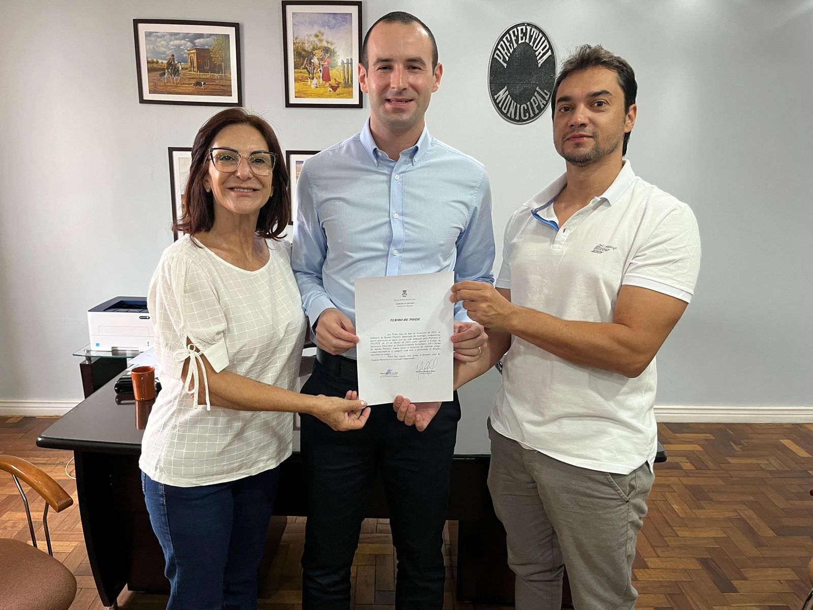 O prefeito Marcelo Gorski de Matos e a vice-prefeita Mara Rebelo deram posse ao novo secretário municipal. Bruno Bertoldo de Melo assumiu a Secretaria de Desenvolvimento Econômico, responsável por gerenciar a articulação com as empresas, indústrias, MEIs e trabalhar por ações na área do empreendedorismo e fortalecer a economia do município, potencializando a geração de empresas e empregos.