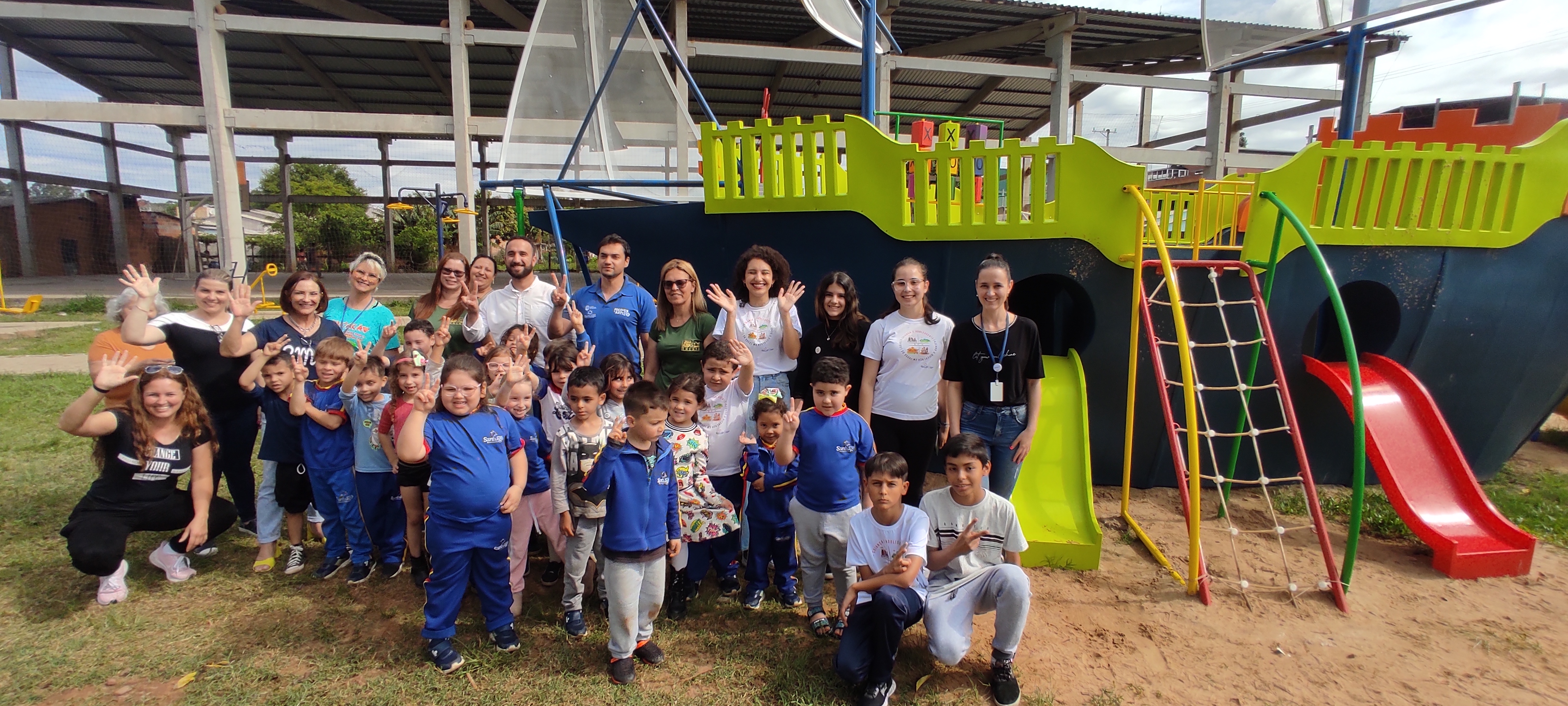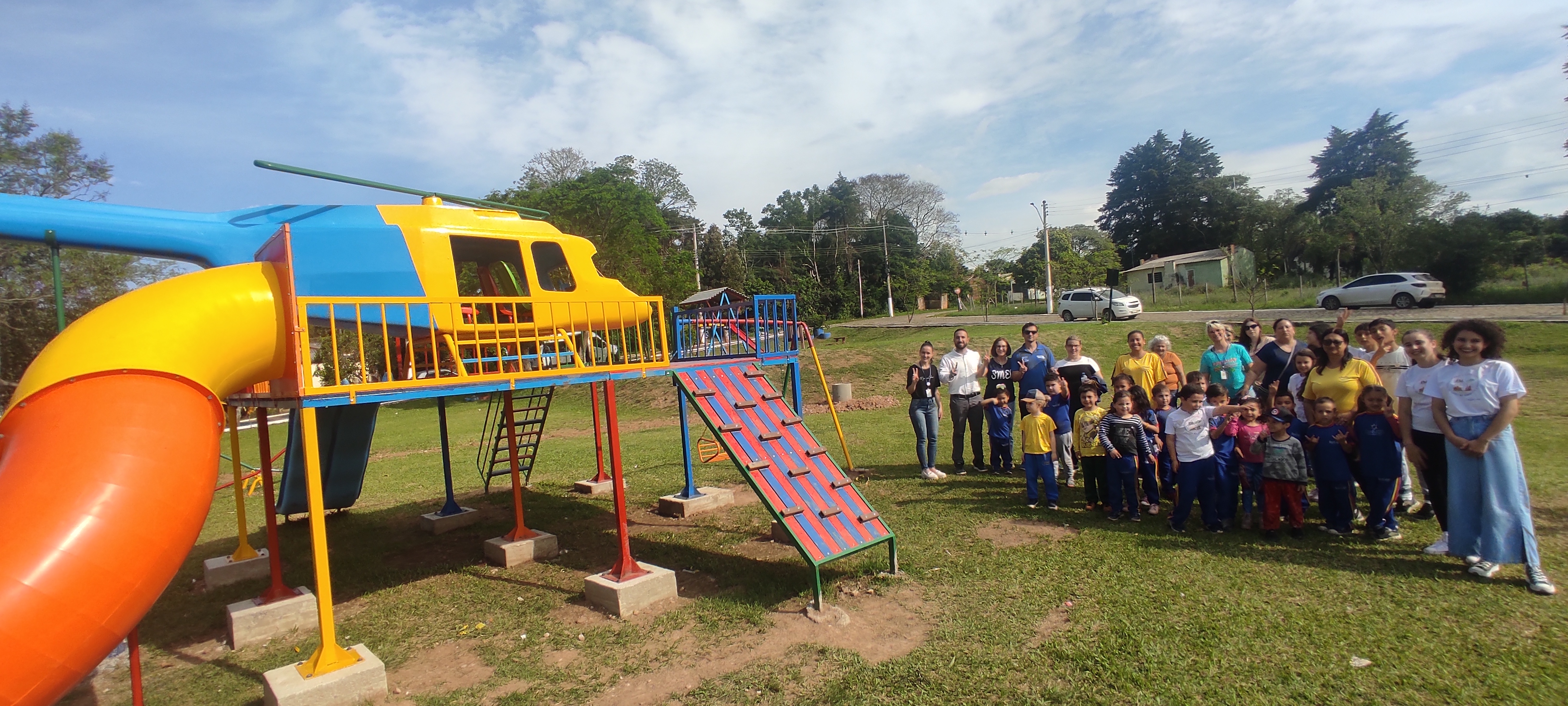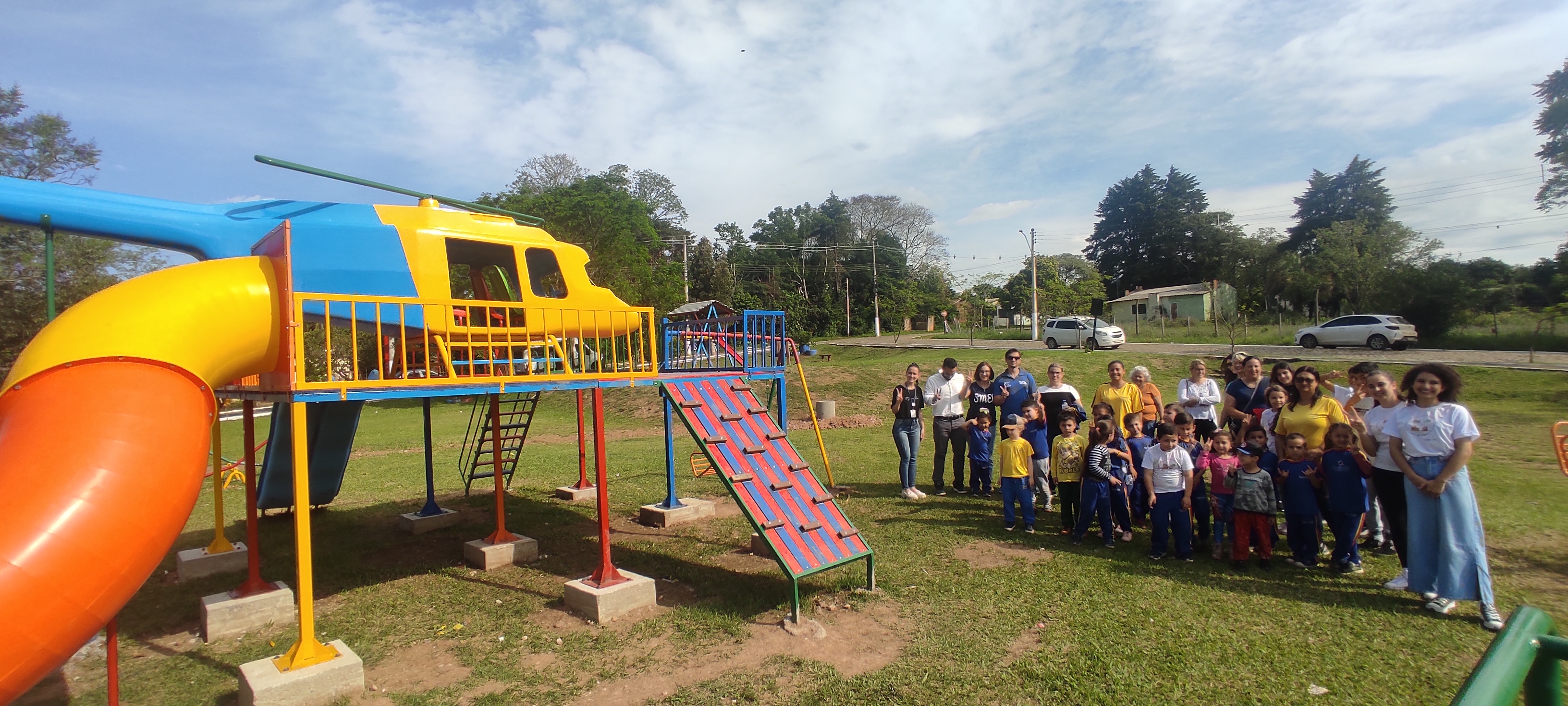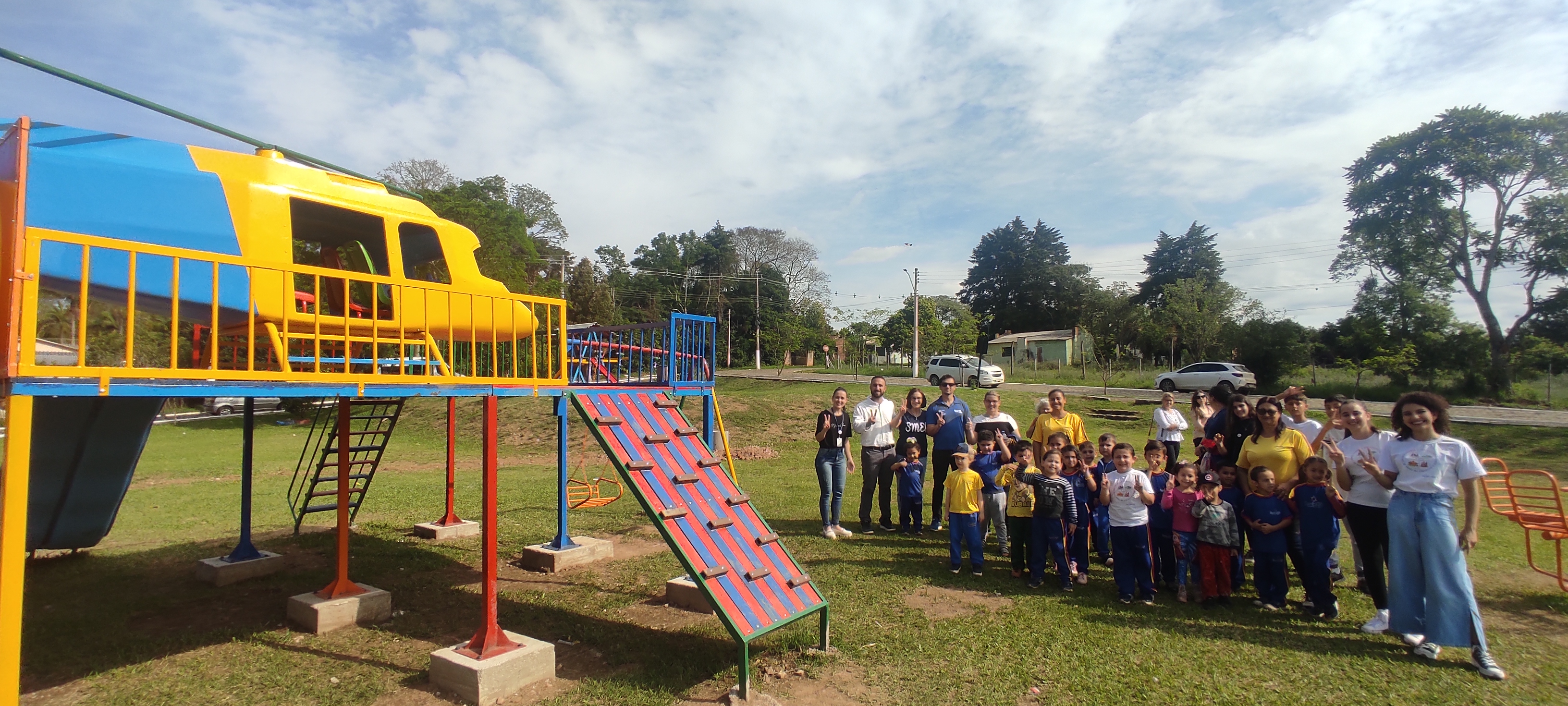 O mês das crianças chegou ao fim e foi marcado por entregas muito especiais para a Administração Municipal: três novas praças temáticas. A do Navio, no Parque da Lagoa, a do Trem, no Ginásio, e a do Helicóptero, no bairro Ana Bonato.