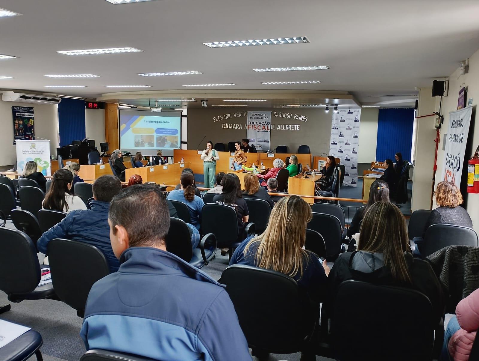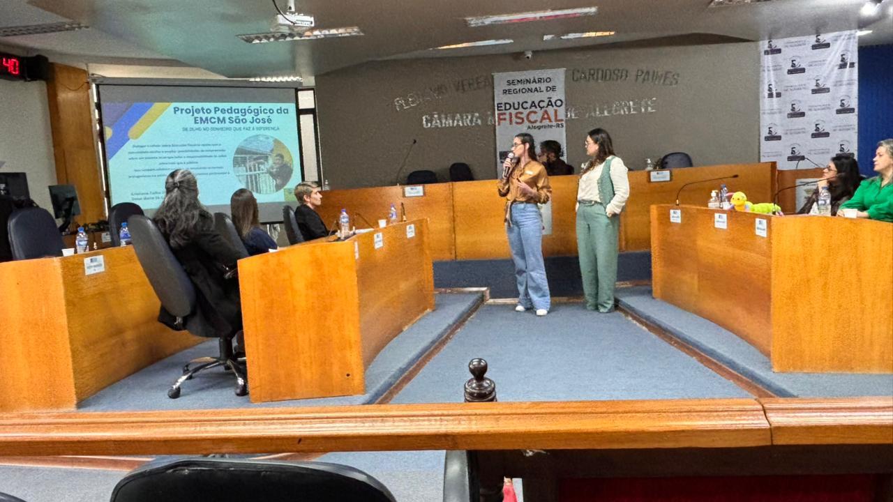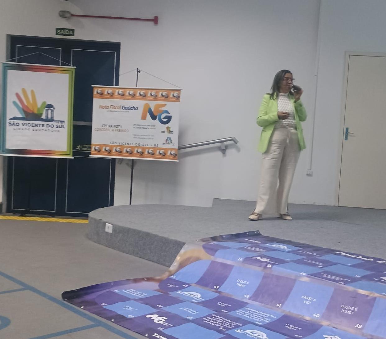 Na última quinta-feira, 06 de novembro, a Secretária Municipal de Educação, Maria Joceli dos Santos Figueiredo, representou o município no “Seminário Regional de Boas Práticas em Educação Fiscal e Nota Fiscal Gaúcha”, realizado em São Vicente do Sul. Na ocasião, a secretária apresentou as ações pedagógicas desenvolvidas nas escolas municipais, que integram a temática da Educação Fiscal ao cotidiano escolar, promovendo o aprendizado sobre cidadania, responsabilidade social e valorização do bem público. Em sua fala, a secretária reforçou a importância desse trabalho, destacando que a temática integra o currículo escolar e contribui para a formação dos estudantes enquanto cidadãos conscientes e participativos.