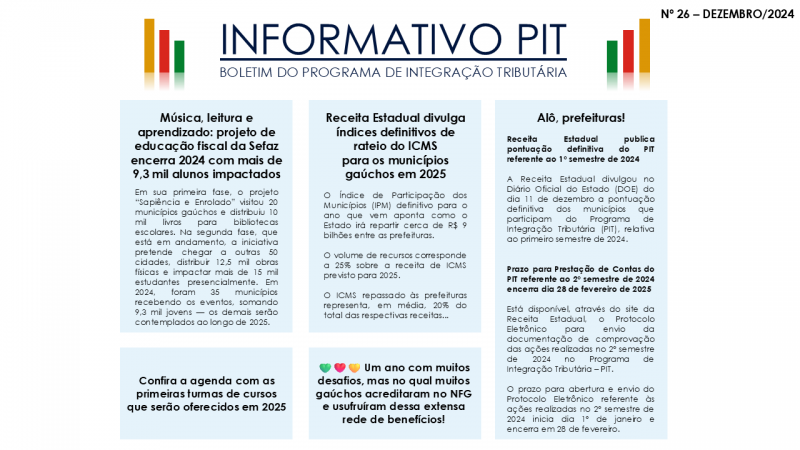 Programa de Integração Tributária (PIT) divulga informativo do mês de dezembro