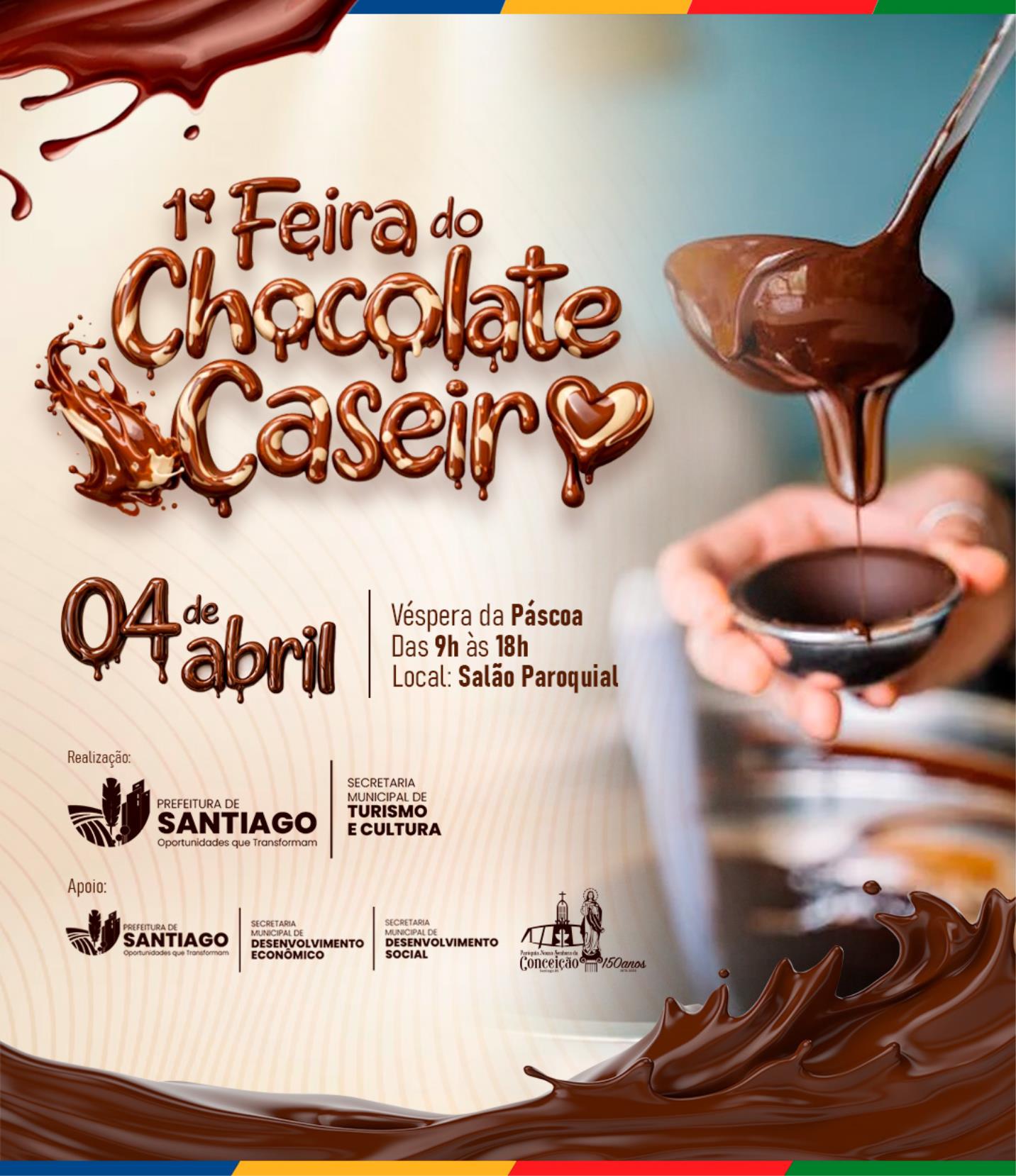 A Páscoa de 2026 em Santiago terá uma novidade deliciosa: no dia 04 de abril (véspera da Páscoa), será realizada a 1ª Feira do Chocolate Caseiro, das 9h às 18h, tendo por local o Salão Paroquial da Matriz.