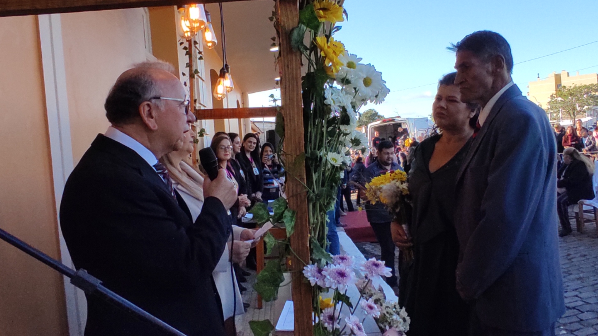 Em uma tarde marcada por amor e emoção, ocorreu neste domingo, 28 de maio, um casamento coletivo que encantou a cidade de Santiago. Promovido pela Secretaria de Desenvolvimento Social em parceria com o Cartório de Registros Civis, o evento teve como cenário a bela Estação do Conhecimento, e contou com a participação de um público de aproximadamente 500 pessoas.