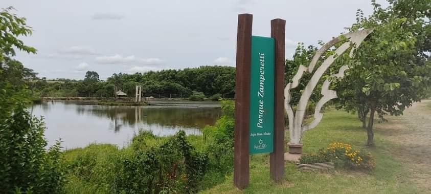 Pista de caminhada no Parque Zamperetti: A pista está sendo construída em torno da lagoa do parque, tornando o local ainda mais atrativo para caminhadas.