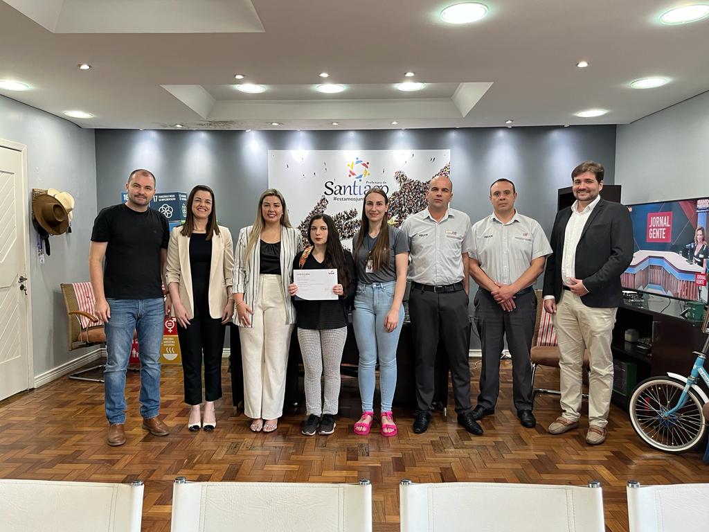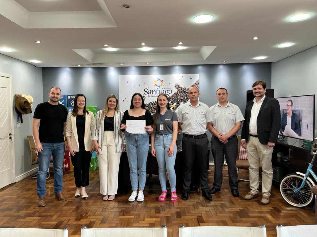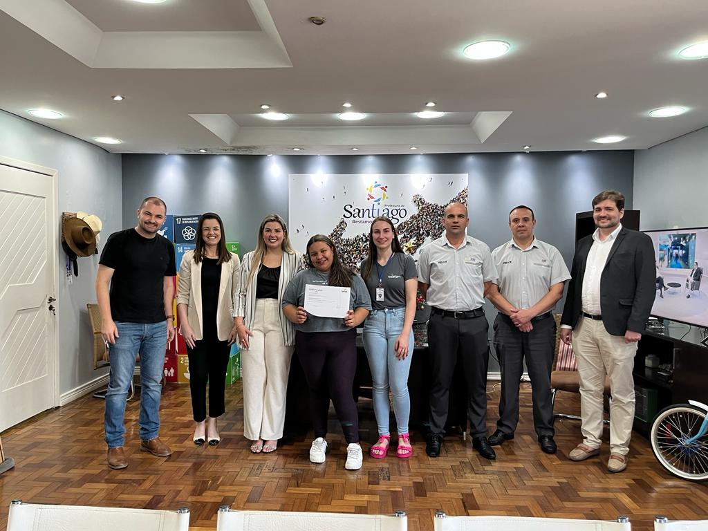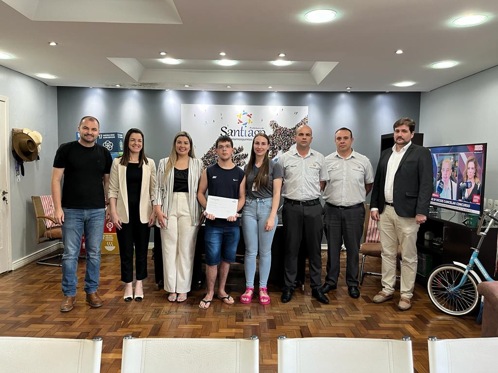 Além do prefeito, participaram da cerimônia de entrega dos certificados o gerente da loja da Felice Fiat de Santiago, Adilson Stangherlin, o consultor de vendas Eduardo Seidel, a líder de processos pedagógicos da unidade do Senac de Santiago Silvana Madalosso, Andrei Simão especialista em parcerias educacionais do senac, Paula Machado diretora do Senac e também a coordenadora de qualificação profissional Michelli Bedin.
