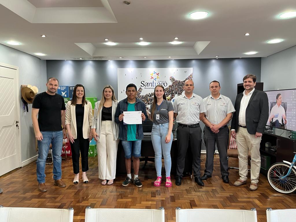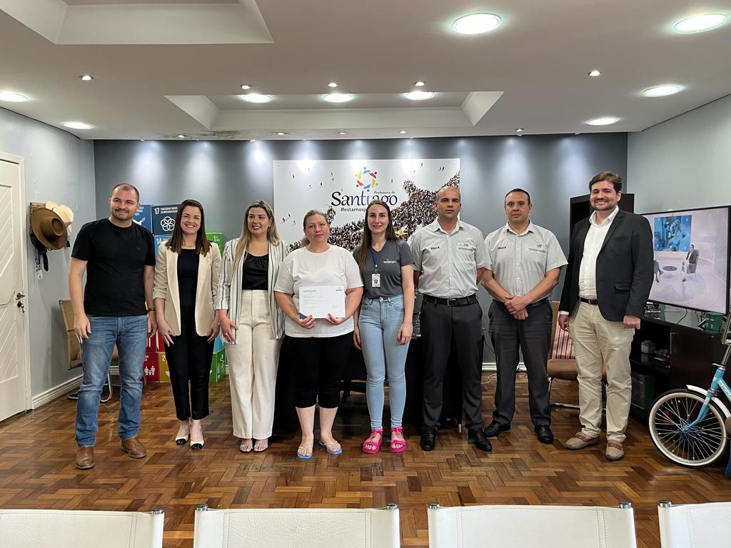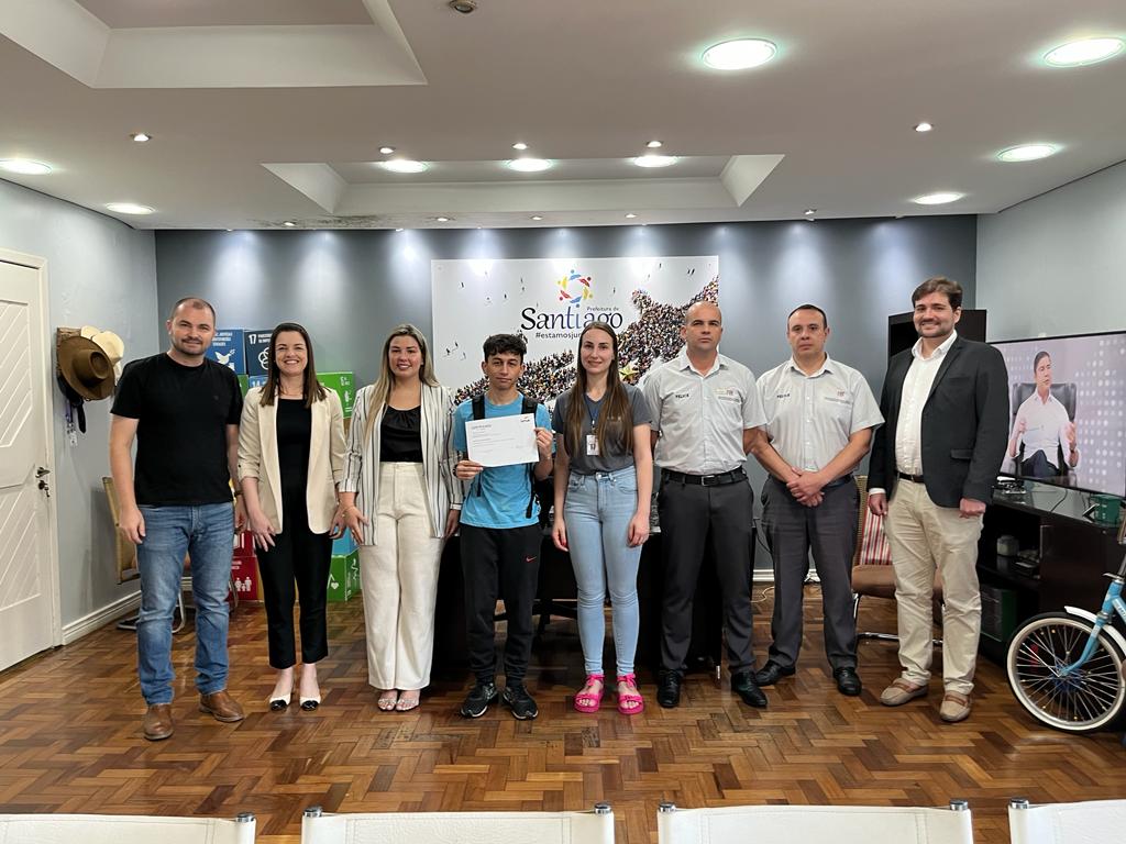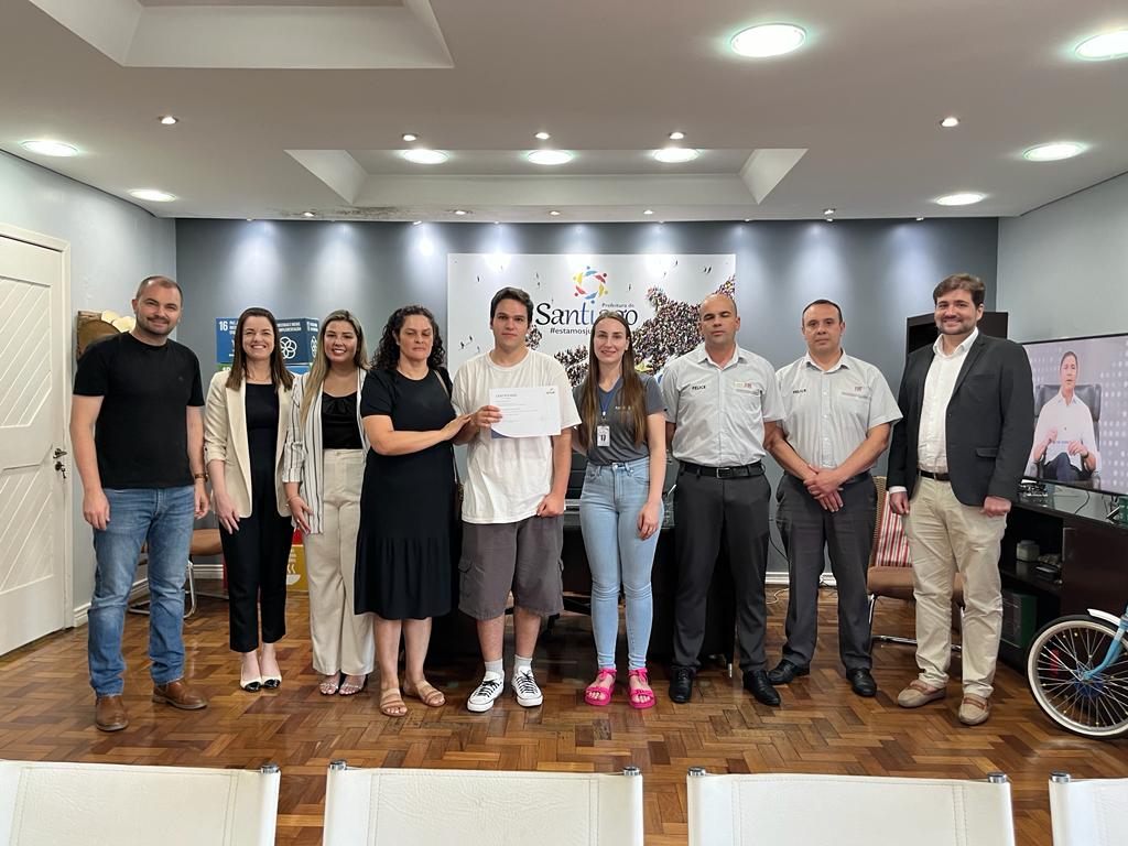 Além do prefeito, participaram da cerimônia de entrega dos certificados o gerente da loja da Felice Fiat de Santiago, Adilson Stangherlin, o consultor de vendas Eduardo Seidel, a líder de processos pedagógicos da unidade do Senac de Santiago Silvana Madalosso, Andrei Simão especialista em parcerias educacionais do senac, Paula Machado diretora do Senac e também a coordenadora de qualificação profissional Michelli Bedin.