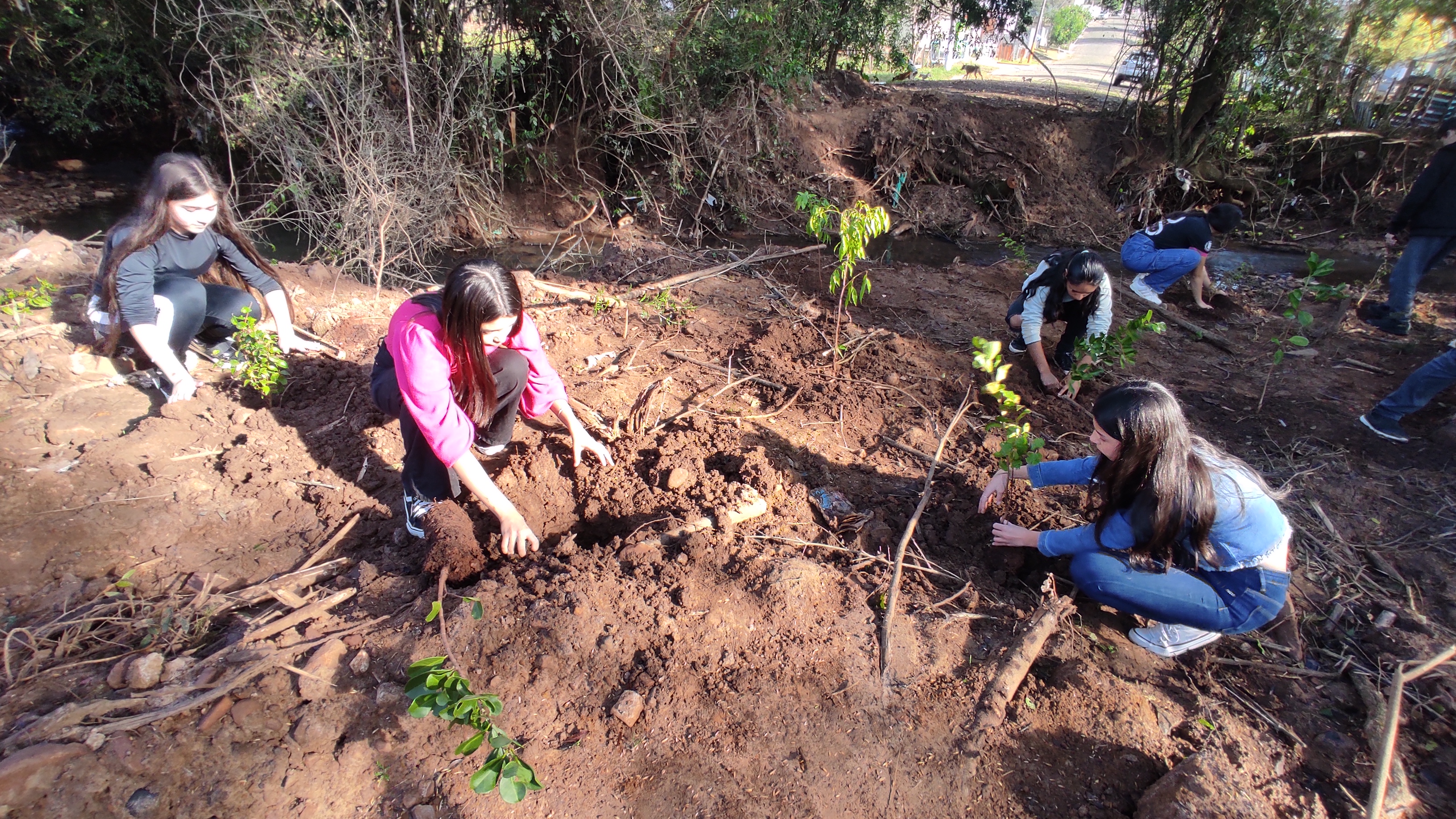 Alunos da escola Geraldina Borges foram levados para uma atividade de replantio de matas ciliares à beira de uma sanga, afluente do Arroio 15, no bairro Riachuelo. Essa atividade está dentro de uma série de iniciativas que marcam a Semana do Meio Ambiente, como o lançamento do Ecodesafio da Reciclagem e a instalação de um Ecoponto no interior.